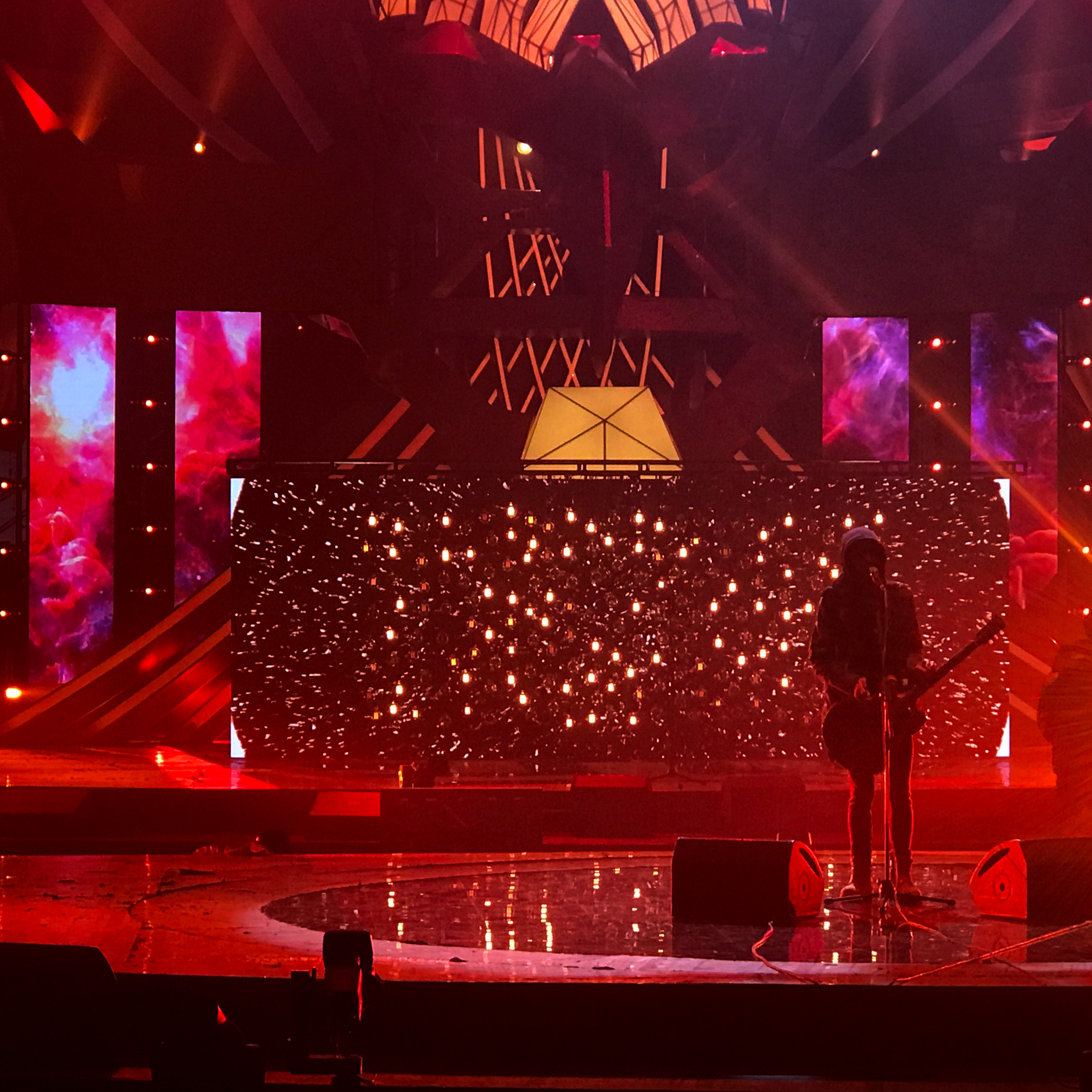 This performance is presenting the time before the world begins. All that the first thing like the first rain, the first stars. The stars at the middle are actually a view of heavy rain from ground to the sky. And the view changes rapidly so that it looks a heavy rain eventually.