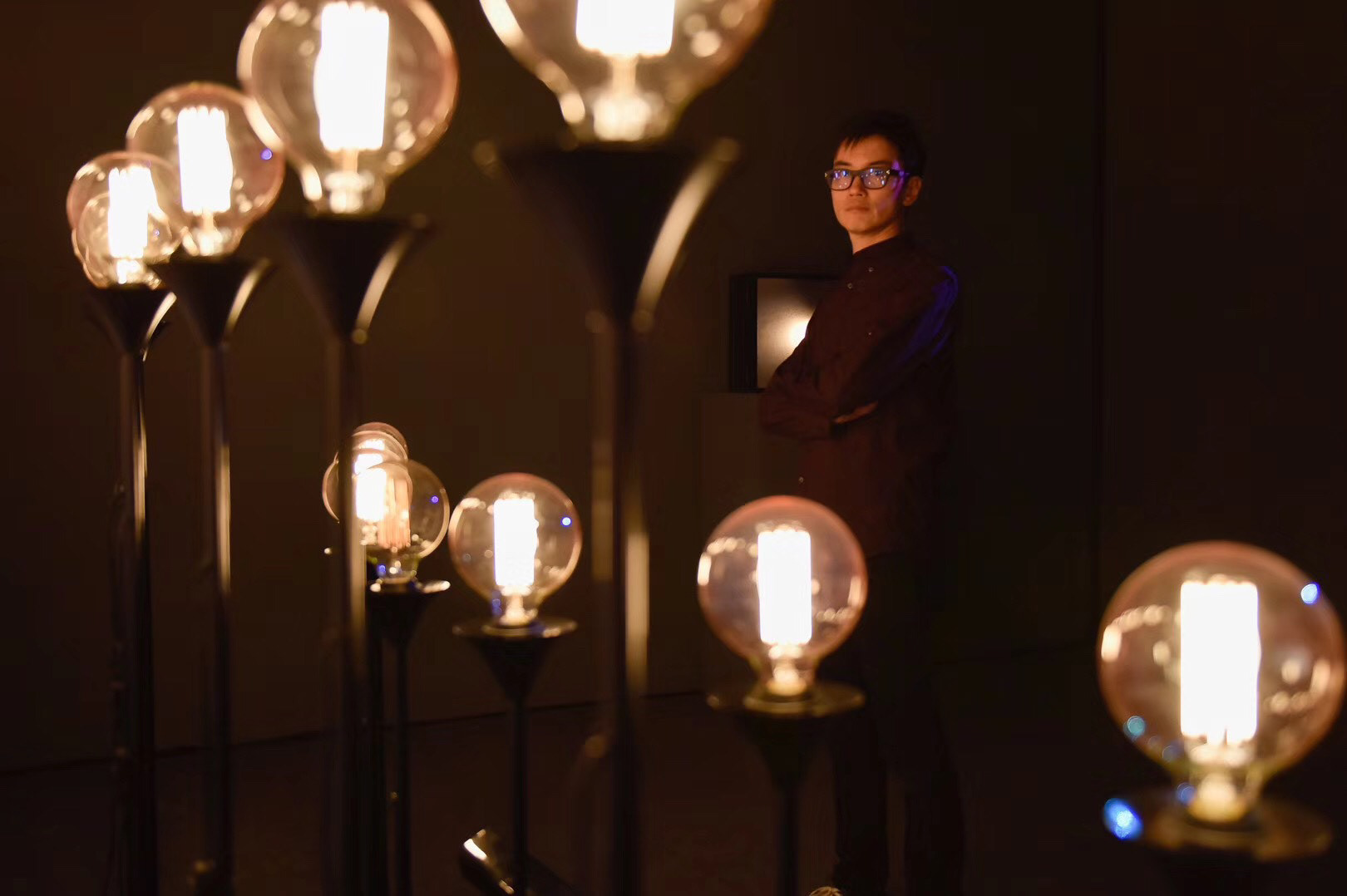 The exhibition was successfully finished and there were lots of attention on the site and praises to the LamX. There was a dramatic story behind this artwork. The LamX you are looking at above is not what I originally planned - Version 2. There was an issue with shipment to China and I needed to make a plan B that looks very close to the original plan. Despite of the issue, the exhibition was successfully held on time. Thank God. In the original plan, I wanted to make the LamX look more active and speak to you, so I've put horn shape elements with light bulbs and adjusted all angles to the center where 'player' will play with LamX to face them.