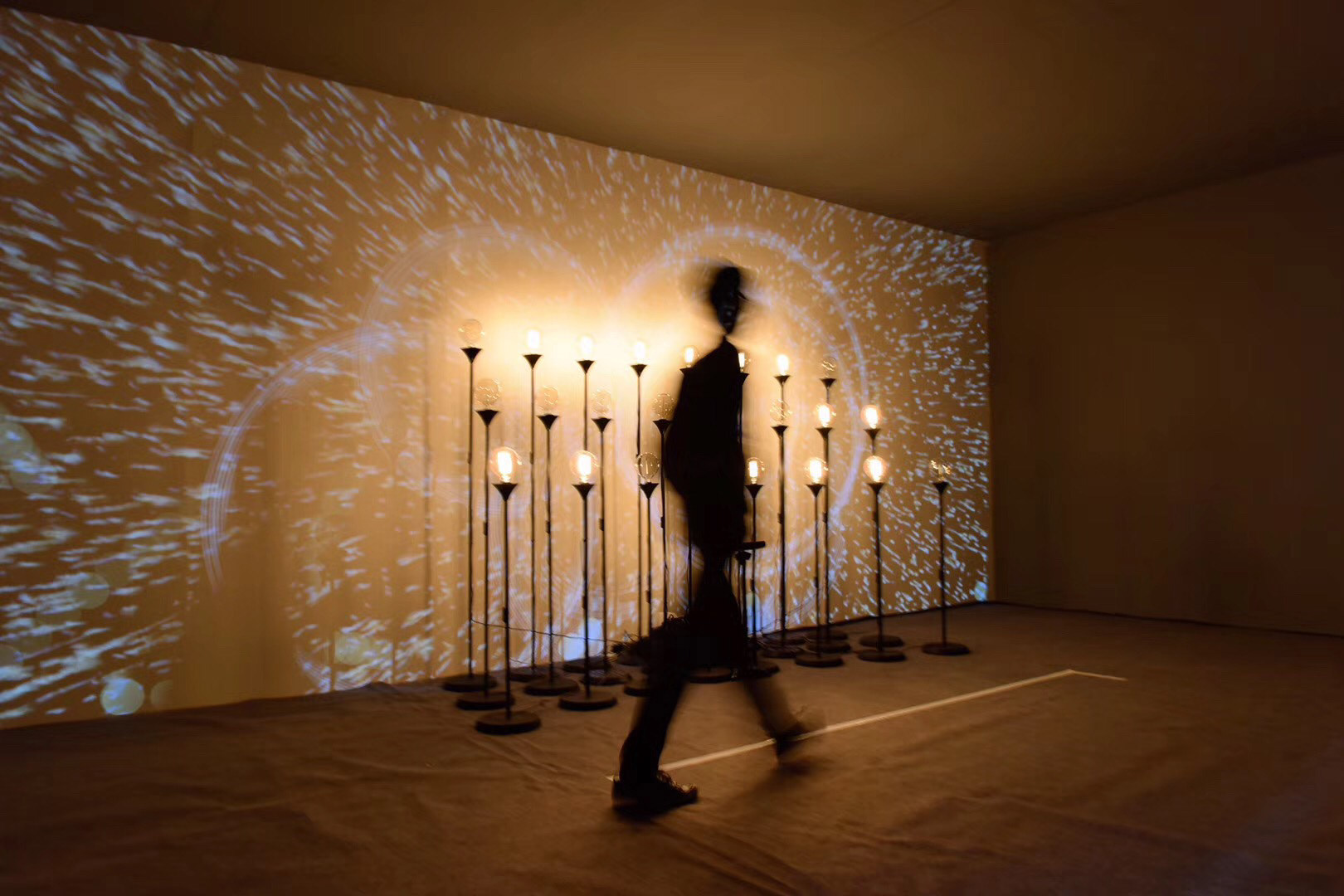 This is LamX #6 which was installed at the venue of Shanghai Art Fair 2017. Basically it interacts with your motion like other LamX editions and also it plays two LamXhow like LamX Playce Edition but it modified for the Shanghai show and minimized. It is more flexible and relies much less on environment of installation.
