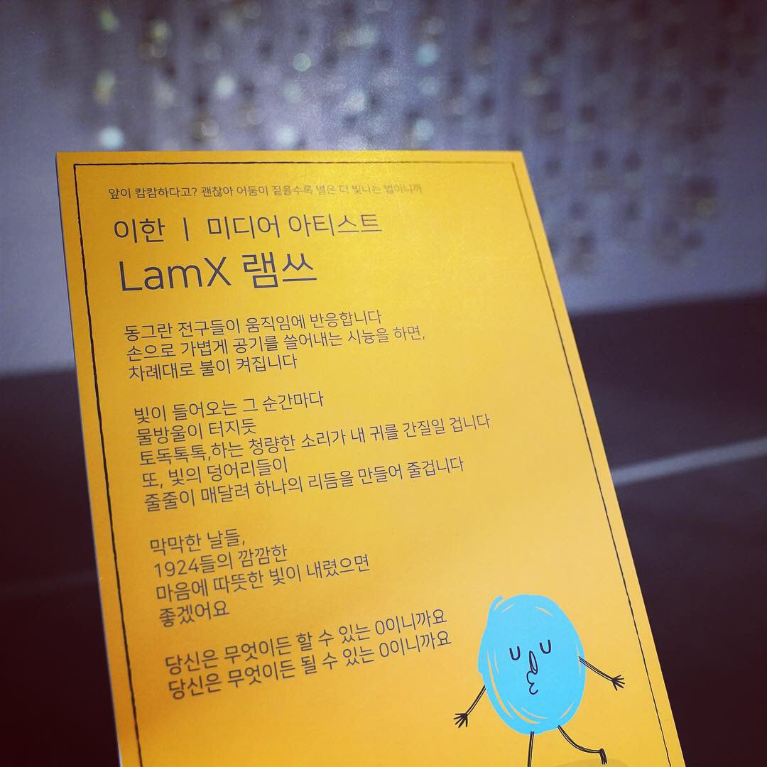 The unique artwork, LamX by Han Lee has been invited and successfully installed and performed for the event at COEX in Seoul. The event was a commercial exhibition for SK Telecom's latest culture brand '0' Young 영 to show off what the brand contains itself.